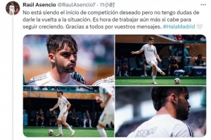 體育資訊6月24日訊 皇馬后衛(wèi)勞爾-阿森西奧社媒發(fā)文,表示自己會(huì)加倍努力,巴爾韋德留言鼓勵(lì)。