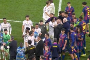 國家德比,皇馬在主場2-1擊敗巴薩。本場比賽堪稱火花四濺,要素拉滿:賽前放話、紅牌、進(jìn)球、點(diǎn)球、失點(diǎn)、賽后沖突一樣不缺。