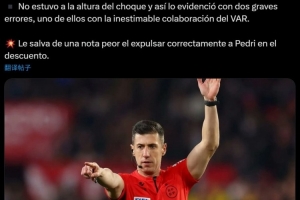 西媒Archivo VAR在賽后為本場比賽主裁判格拉多打分:“災難級表現,2.5分?!?/p>