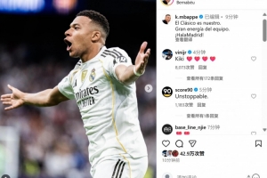 本場比賽姆巴佩破門,賽后他也在個人社媒曬出慶祝進球照片,配文寫道:“國家德比勝利屬于我們,球隊展現出很棒的活力,皇馬加油!”