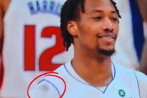 GIF-??發際線粉蹭掉了!杰倫-布朗的頭一通亂蹭 OG球衣一大團黑
