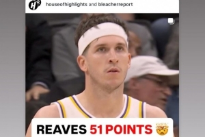 此役,里夫斯出戰39分鐘,22投12中,三分球10中6,22罰21中爆砍生涯新高的51分外加11板9助2斷,正負值高達+22。