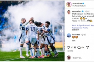體育資訊10月28日訊 美職聯季后賽第一輪首場比賽,穆勒點射破門,溫哥華白浪主場3-0擊敗達拉斯FC,占據晉級先機。