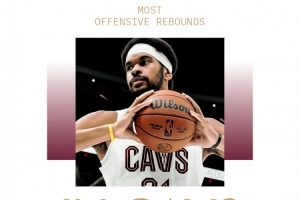 截至發稿,阿倫搶到2個前場籃板,騎士生涯前場籃板數來到1036位,超過詹姆斯(1034)升至隊史第10。