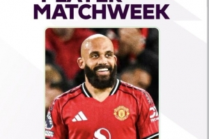 體育資訊10月28日訊 英超官方宣布,曼聯前鋒姆伯莫當選本輪英超最佳球員。