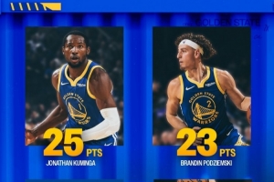 在昨日的比賽中,勇士在主場131-118擊退來訪的灰熊。這場比賽,勇士有四個人得分上20,其中巴特勒20分、庫明加25分、波杰姆斯基23分、穆迪20分;而值得一提的是,這場比賽庫里僅11次出手拿到16分,出戰時間只有29分42秒。