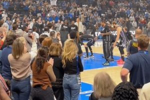 賽前球員入場環節,當威少被介紹時,全場爆發了歡呼聲和掌聲,許多球迷為曾經的俄城之子起立叫好。
