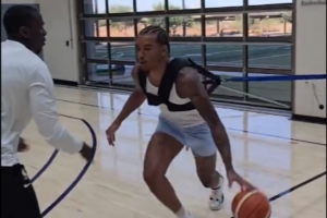 體育資訊6月25日訊 今天,馬刺記者JeffGSpursKENS5轉發了索漢的運球訓練視頻。