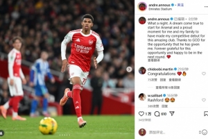 安努斯寫道:“多么美妙的夜晚。為阿森納首發是夢想成真,我和家人都為我為這家了不起的俱樂部完成正式首秀而感到自豪。感謝上帝賜予我的這個機會,永遠感激這次機遇,并為成功晉級下一輪感到開心。??”