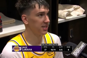 體育資訊10月30日訊 湖人客場116-115絕殺森林狼,賽后,湖人球員拉拉維亞接受媒體采訪。