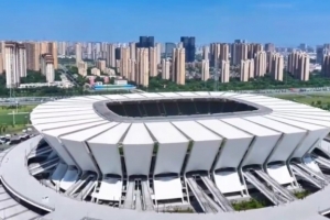 可容納4.5萬人的昆山奧體中心足球場,是江蘇省內唯一一座滿足國際足聯A級比賽標準的專業足球場。建筑外觀設計靈感源于蘇州非物質文化遺產——“折扇”。這種超大懸挑結構,能最大程度保證觀賽視角無遮擋。