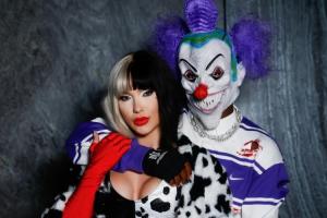 維尼修斯打扮成紫色的小丑,女友弗吉尼亞則cos了迪士尼動畫《101忠狗》中的經(jīng)典反派角色庫伊拉,一同出cos的還有她與前夫的三個孩子。