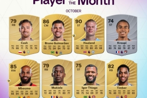 體育資訊10月30日訊 英超官方公布了10月最佳球員候選8人名單,哈蘭德領銜: