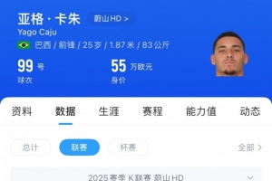 意向中的引援人選亞格則是中鋒位置的替代者,將在523戰術體系中擔任進攻支點,如果與浙江牽手成功,亞格將會以租借的方式加盟,租期半年。身高1.86米、體重82公斤的亞格2023年租借到K聯賽江原FC,去年7月賽季中途轉會蔚山HD,以13個進球成為K聯賽銅靴。