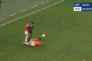 體育資訊06月25日訊 海牛vs浙江第82分鐘,羅森文貼地飛鏟米特里策,連續將其3次放倒!