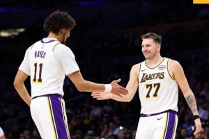 賽后,湖人官方社媒分享贏球海報,并寫道:“洛杉磯今晚很吵。”海報上,東契奇和海斯擊掌慶祝。