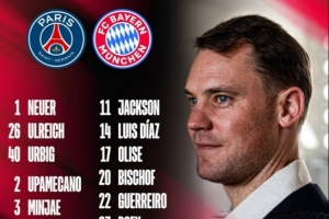 體育資訊11月3日訊 拜仁將在本輪歐冠迎戰巴黎,球隊也公布了本場大名單,具體如下: