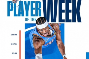 雷霆官方曬出亞歷山大周最佳海報并寫道:“亞歷山大是上周的西部最佳球員!”