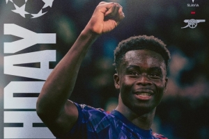 阿森納官方更新社媒動態,曬出了為此役制作的海報,薩卡單人出鏡。