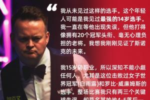 墨菲:我從未見過這樣的選手。這個年輕人可能是我見過最強的14歲選手。我一直在等他出現失誤,但他打得像擁有20個冠軍頭銜、毫無心理負擔的老將。我想我剛剛見證了斯諾克的未來。