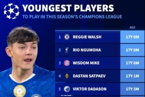 以下為歐冠各隊有望出戰比賽最年輕球員排行: