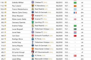 以下為CIES未滿20歲預(yù)估轉(zhuǎn)會(huì)費(fèi)top10