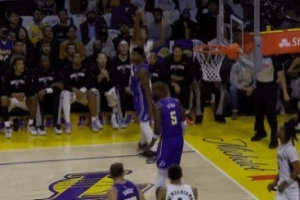詹姆斯:這是我第二次看到鷹眼回放 不知這是否是LBJ專屬攝像頭