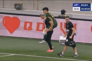第67分鐘,王鈺棟在比賽中受傷被擔架抬出場。王鈺棟的這次受傷并非是在對抗中產生的,而是自己崴到了腳,被抬出球場的時候左膝位置進行了簡單的包扎和冰敷。