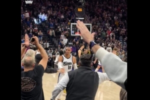 賽后,威少轉(zhuǎn)發(fā)了自己和場(chǎng)邊球迷慶祝的視頻,并寫道:“Why not(威少名言)?!”