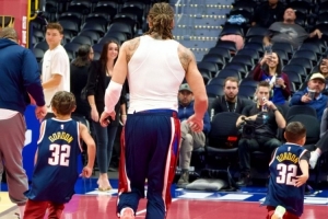 賽前,掘金自媒體DNVR Nuggets曬出了兩個小侄子身穿阿隆·戈登的照片,并寫道:“阿隆叔叔。”