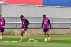 David Ibá?ez在社交媒體曬出巴薩訓(xùn)練視頻,并配文寫道:“巴薩今日進(jìn)行訓(xùn)練,備戰(zhàn)對(duì)陣塞爾塔的比賽。埃里克-加西亞佩戴面具訓(xùn)練,克里斯滕森明日也可能隨隊(duì)出征。”