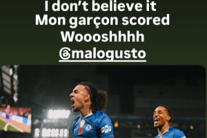 他的隊友科爾維爾也通過社媒曬照調侃:“我不相信!我的男孩進球了,嗖!@古斯托”。