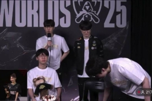 體育資訊11月9日訊 采訪只準(zhǔn)備了兩把椅子!Keria中途離開,F(xiàn)aker終于能坐下了。