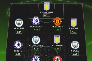 后衛:努內斯(曼城)、福法納(切爾西)、德里赫特(曼聯)、迪涅(維拉)