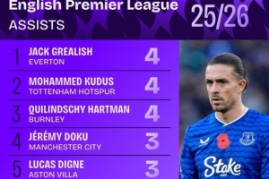 體育資訊11月11日訊 英超聯(lián)賽已經(jīng)進(jìn)行了11輪,squakwa也統(tǒng)計了本賽季英超助攻情況,格拉利什等3人并列居首。