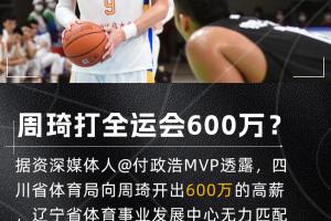 全運會前,資深媒體人@付政浩MVP透露,四川省體育局向周琦開出600萬的高薪,遼寧省體育事業發展中心無力匹配,因此他選擇轉投四川。