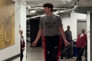 >>今天有機會嗎?楊瀚森賽前熱身秀各種扣籃三分球也信手拈來" />