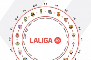 體育資訊11月13日訊 西甲官方更新社媒動態,曬出本賽季各隊勝負閉環圖片。
