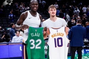 賽后,獨行俠狀元秀弗拉格和太陽首輪10號秀馬盧阿奇交換球衣。