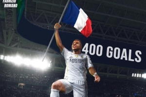 姆巴佩達成職業生涯400球里程碑,知名記者羅馬諾社媒曬出海報,對他表示祝賀。