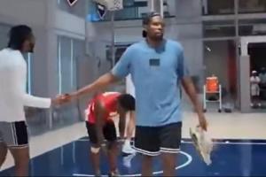 比賽打著打著,杜蘭特嫌棄Speed上籃不中,直接脫下了球鞋選擇退賽,他表示:“這個(gè)上籃我真是受不了了。等我有了更強(qiáng)的隊(duì)友我會(huì)回來(lái)的。”