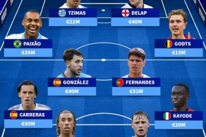 中場:派尚(巴西,3500萬)、尼科·岡薩雷斯(西班牙,4000萬)、馬特烏斯·費(fèi)爾南德斯(葡萄牙,3200萬)、米卡·霍茨(比利時(shí),1300萬)