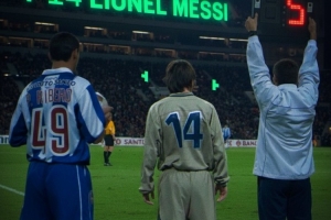 2003年11月16日,16歲的梅西在巴薩對陣波爾圖的友誼賽中身披14號球衣替補出場,上演巴薩一線隊首秀。當時巴薩的主帥是里杰卡爾德,而波爾圖主帥是穆里尼奧。