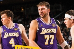 賽后湖人官方發布海報,東契奇位居C位,里夫斯和克內克特入鏡。