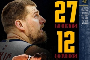 隨后,掘金官方又修正了約基奇的數據,為27分12籃板10助攻。