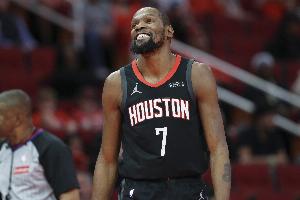 杜蘭特弧頂面對小瓦格納中投命中,對此,火箭隊記Lachard Binkley評論道:“如果有人在休賽期質疑為什么交易來37歲的凱文·杜蘭特,這就是原因。他是終極終結者。“