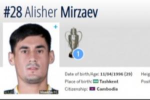 體育資訊11月17日訊 根據國際足聯官方消息,柬埔寨歸化原烏茲別克斯坦球員阿利舍爾·米爾扎耶夫。