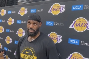 體育資訊11月18日訊 今日,湖人前鋒詹姆斯在訓練后接受了采訪。
