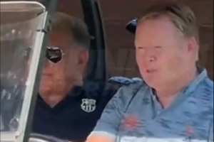 體育資訊6月27日訊 《世界體育報(bào)》曬出視頻,巴薩主席拉波爾塔與前主帥科曼一起打高爾夫。