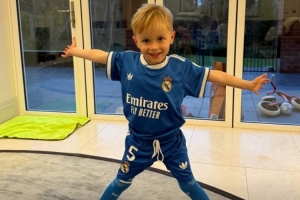 體育資訊11月19日訊 熱刺中場麥迪遜在今日通過社媒曬出自己兒子的動態(tài),后者穿上了貝林厄姆在皇馬的5號球衣。